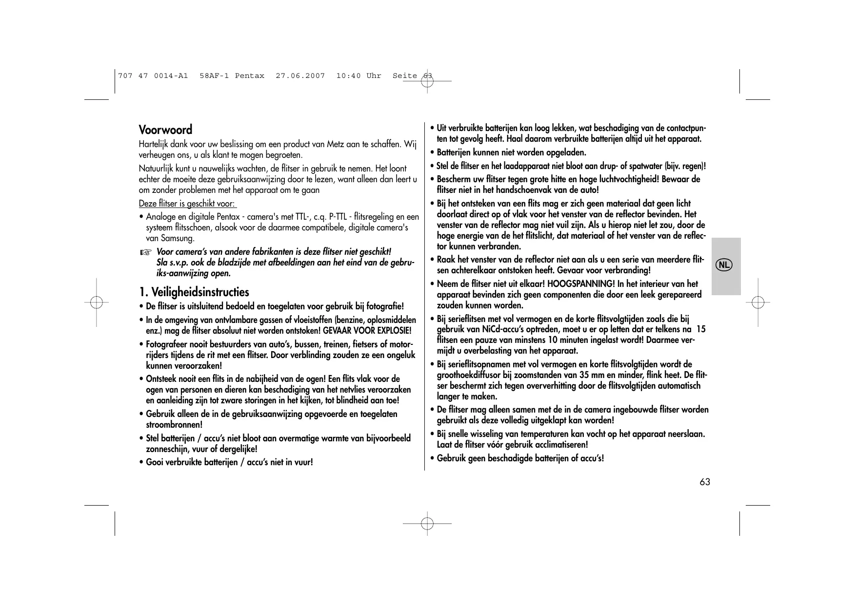 GEBRUIKSAANWIJZING MECABLITZ 58 AF-1 P DIGITAL METZ