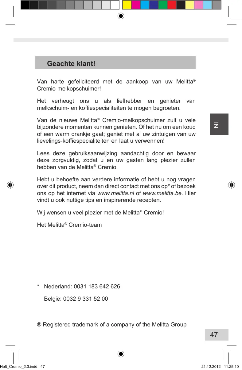 GEBRUIKSAANWIJZING CREMIO MELITTA