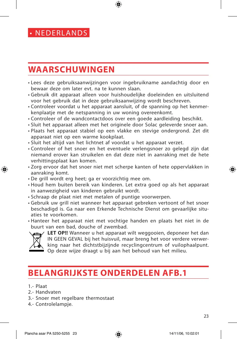 GEBRUIKSAANWIJZING PA5255 SOLAC