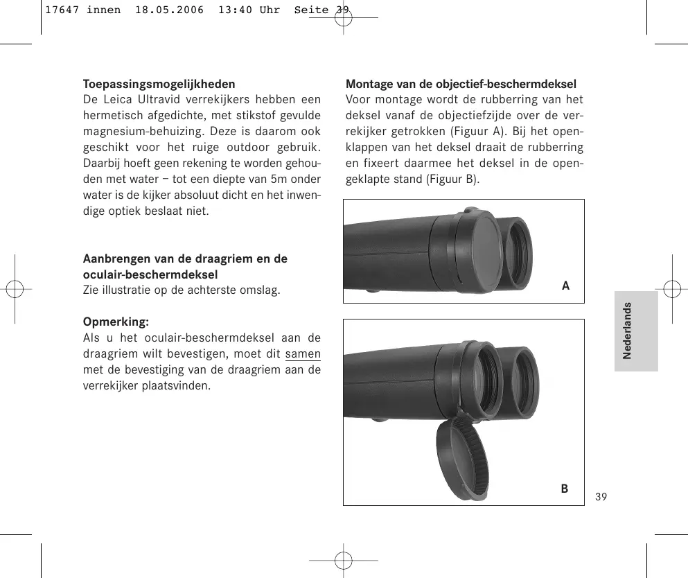 Download de handleiding voor uw Verrekijkers in PDF-formaat gratis! Vind uw handleiding ULTRAVID 8X50BR - LEICA en neem uw elektronisch apparaat weer in handen. Op deze pagina staan alle documenten die nodig zijn voor het gebruik van uw apparaat. ULTRAVID 8X50BR van het merk LEICA.