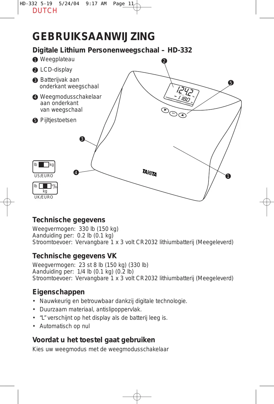 Vind de handleiding van het apparaat gratis HD 332 TANITA in PDF-formaat.