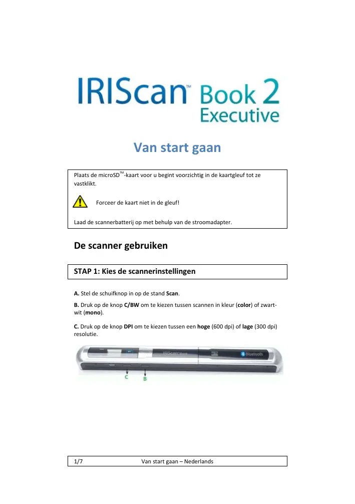 l'RIScan" Book ainsi qu'à votre Appuyez sur la carte microSD pour la
