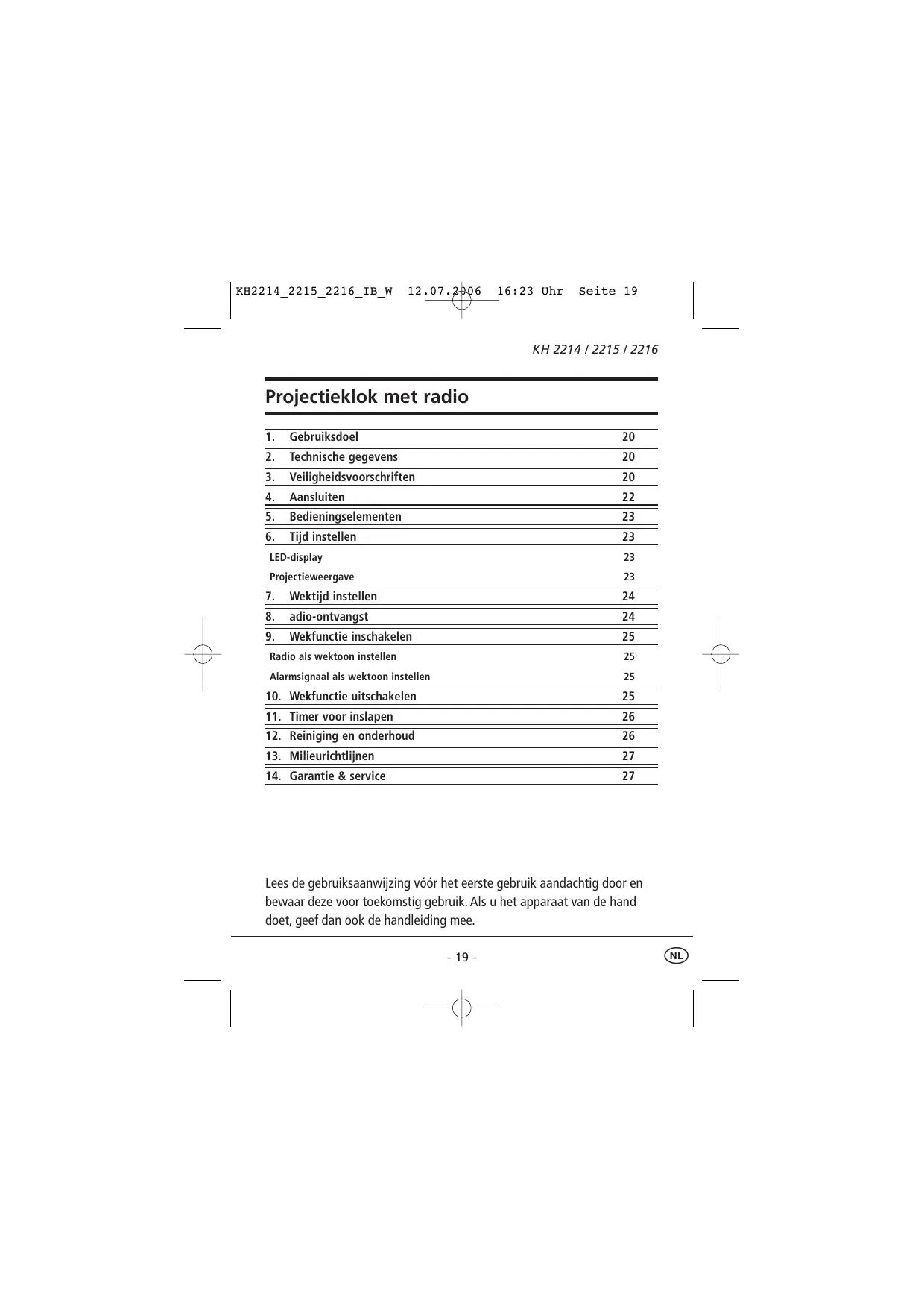 Download de handleiding voor uw Projectiewekker in PDF-formaat gratis! Vind uw handleiding KH 2216 - EBENCH en neem uw elektronisch apparaat weer in handen. Op deze pagina staan alle documenten die nodig zijn voor het gebruik van uw apparaat. KH 2216 van het merk EBENCH.