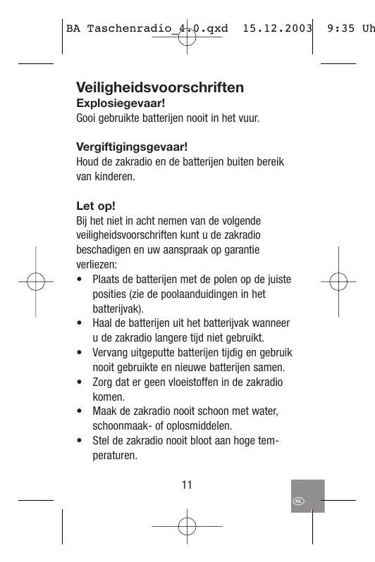 Houd de zakradio en de batterijen buiten bereik van kinderen.