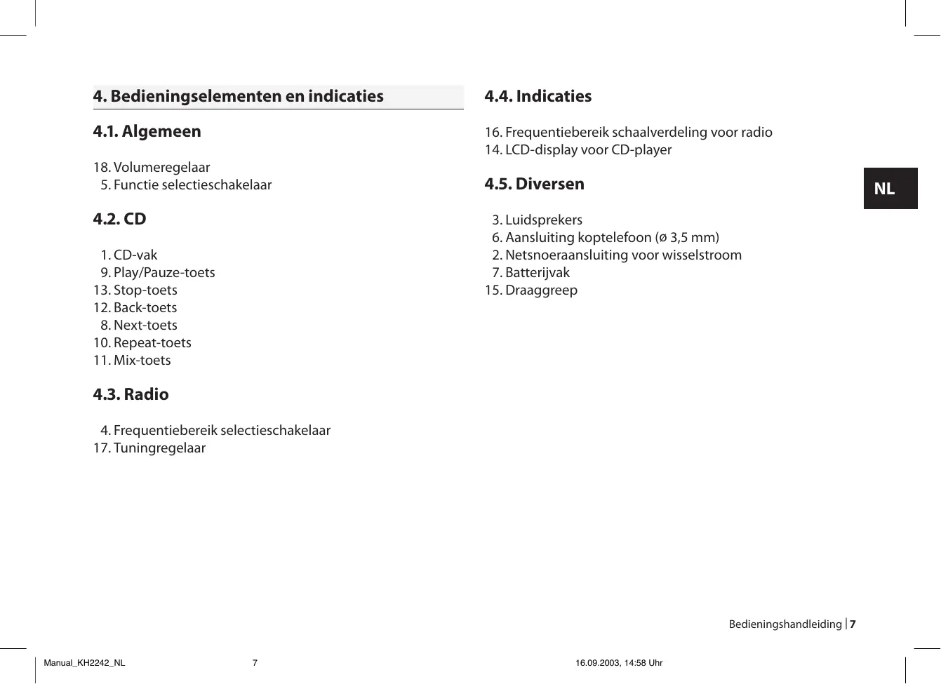 Download de handleiding voor uw Draagbare cd-speler in PDF-formaat gratis! Vind uw handleiding KH 2242 - EBENCH en neem uw elektronisch apparaat weer in handen. Op deze pagina staan alle documenten die nodig zijn voor het gebruik van uw apparaat. KH 2242 van het merk EBENCH.