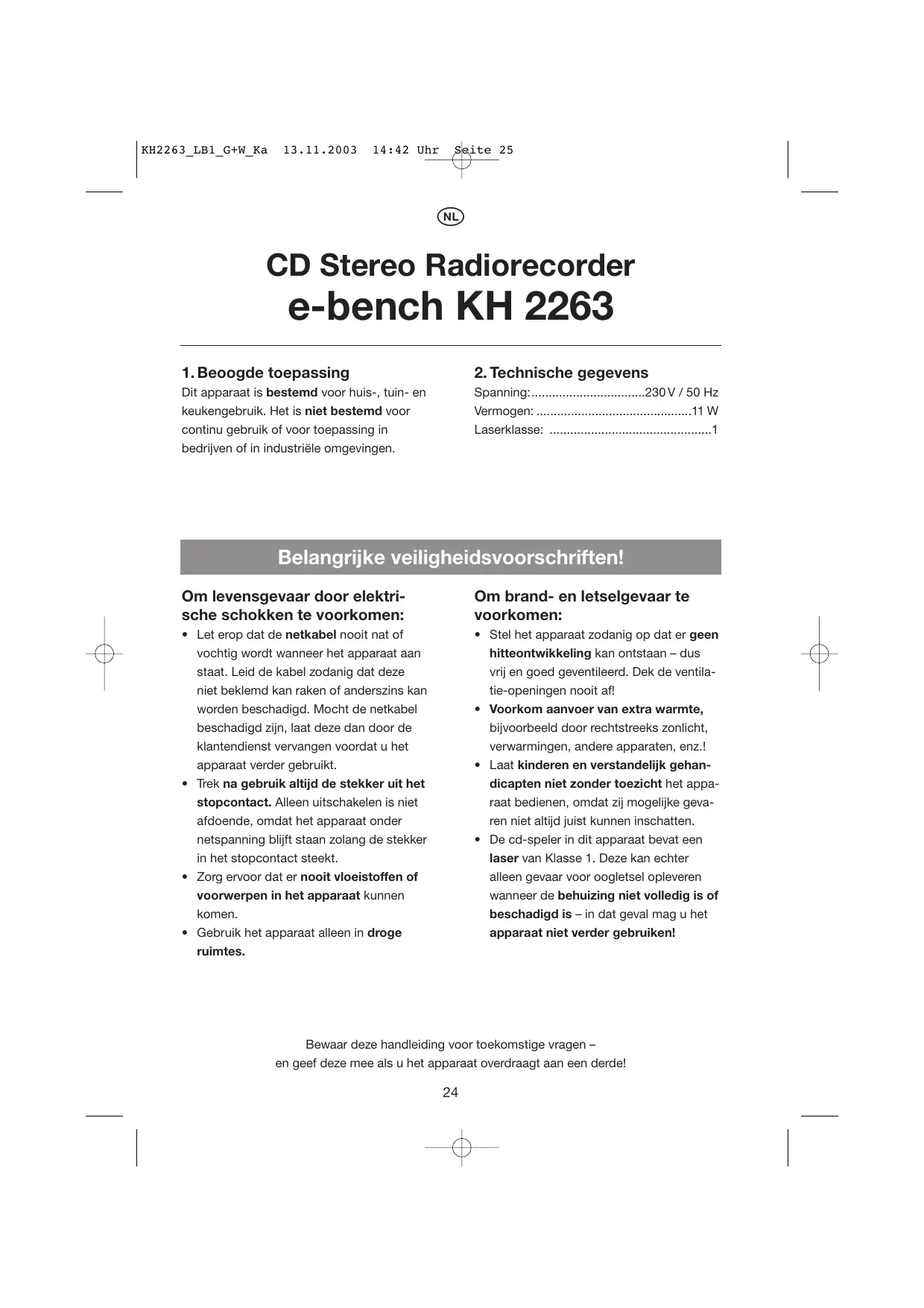 Vind de handleiding van het apparaat gratis KH 2263 CD RADIO CASSETTE RECORDER EBENCH in PDF-formaat.