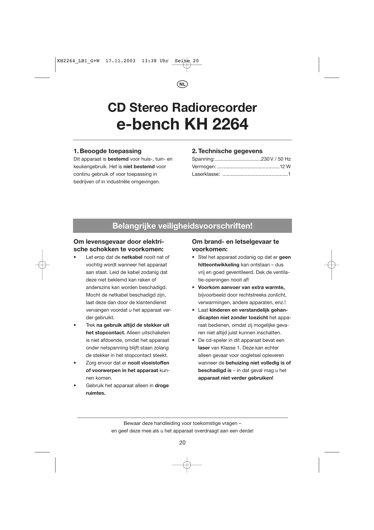 Vind de handleiding van het apparaat gratis KH 2264 CD RADIO CASSETTE RECORDER EBENCH in PDF-formaat.