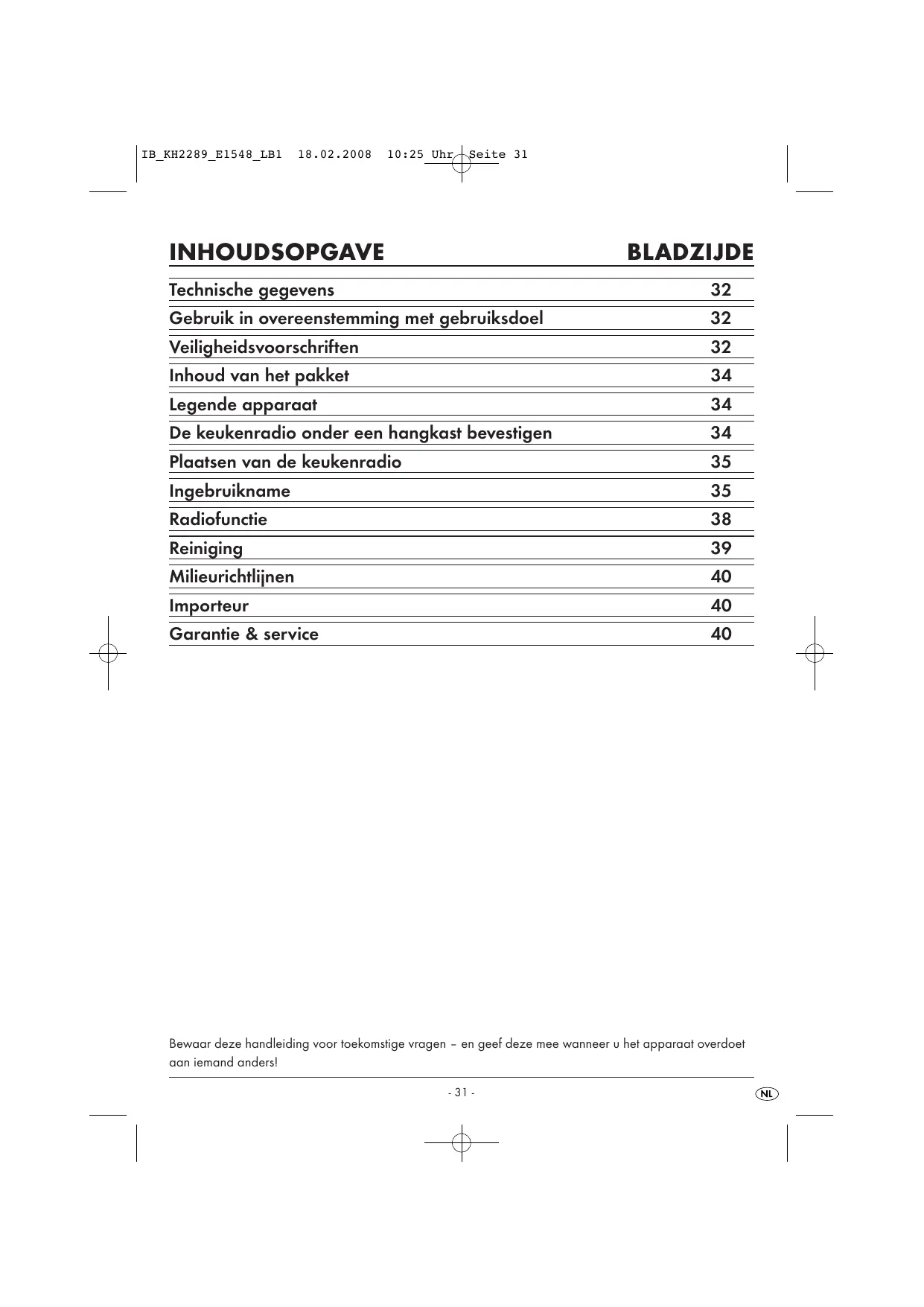 La radio de cuisine n'est pas conçue pour être utilisée dans des contextes commerciaux ou industriels. Aucune garantie n'est donnée pour des dégâts qui résulteraient d'une utilisation non conforme !