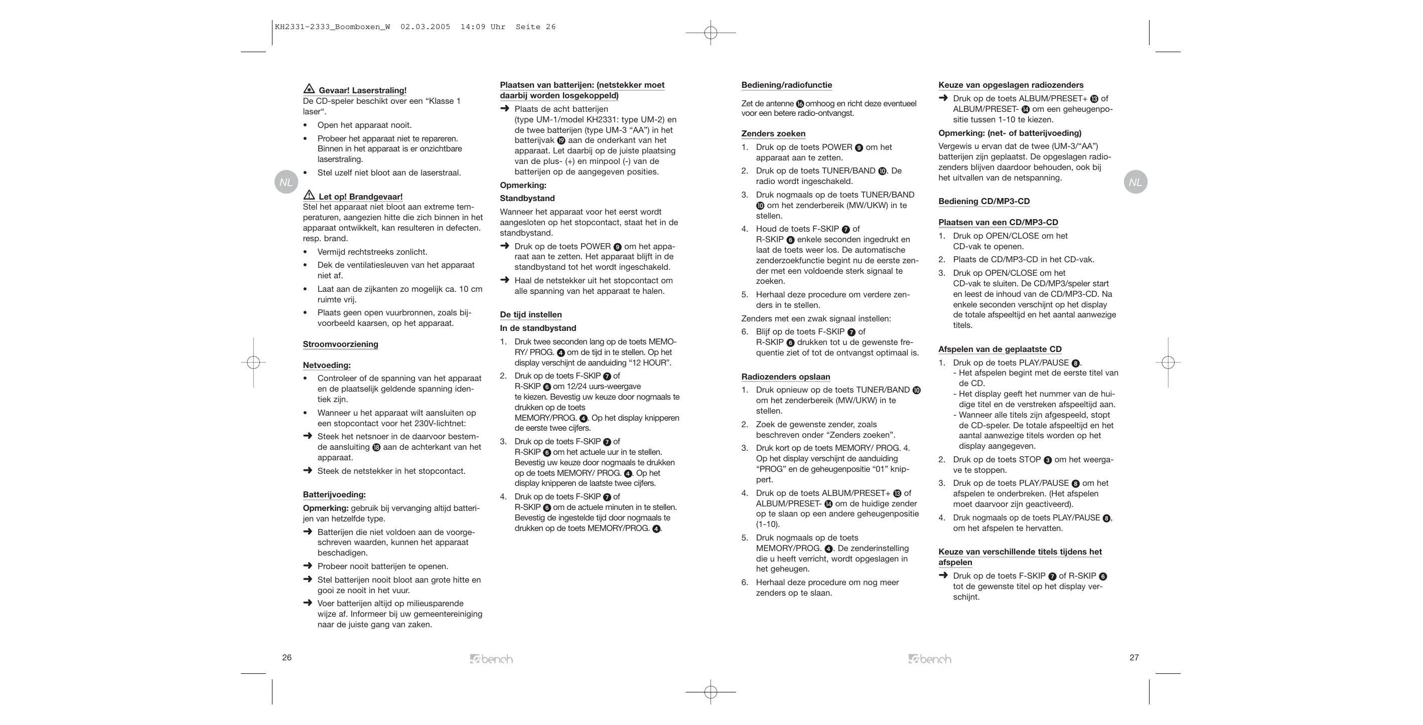 GEBRUIKSAANWIJZING KH 2331 PLL CD PLAYER WITH RADIO AND MP3 EBENCH