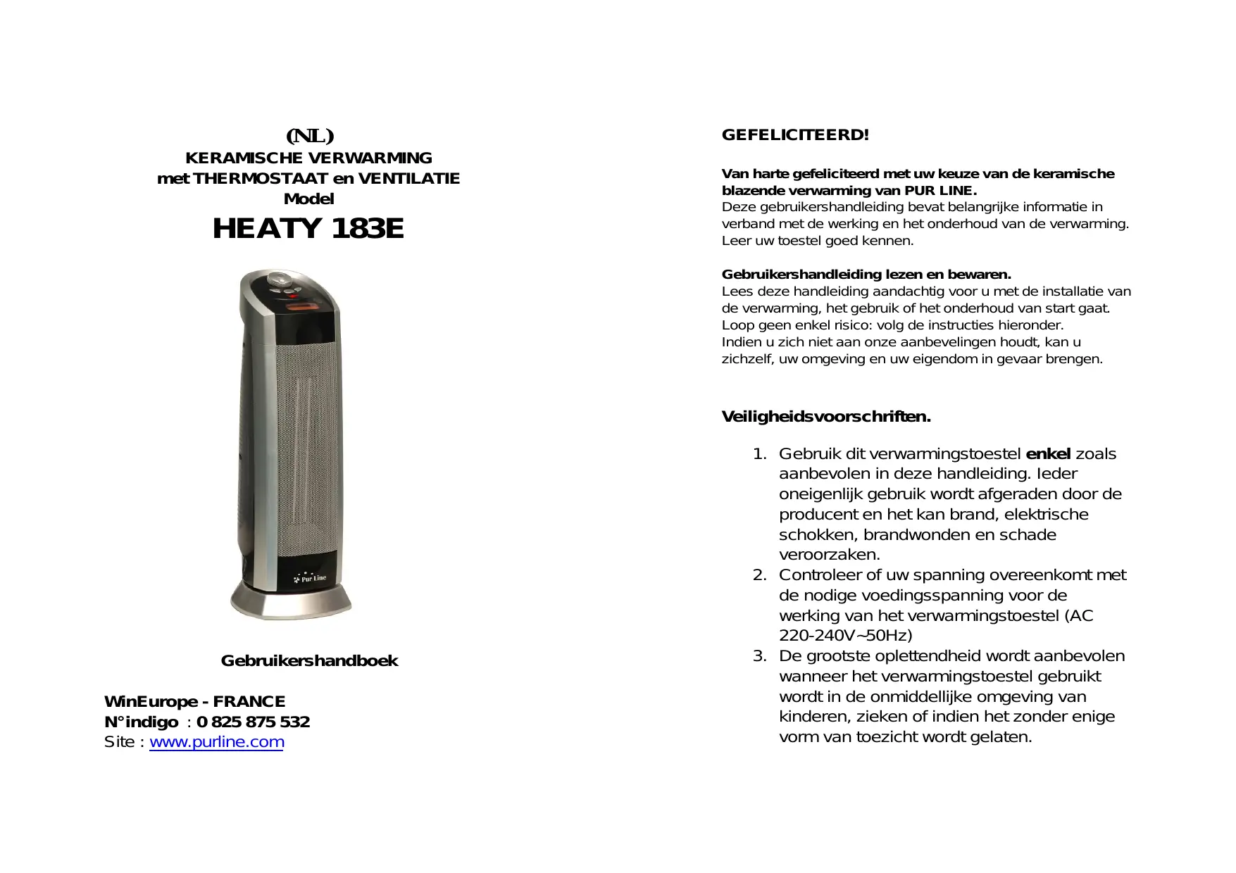GEBRUIKSAANWIJZING HEATY 183E PUR LINE