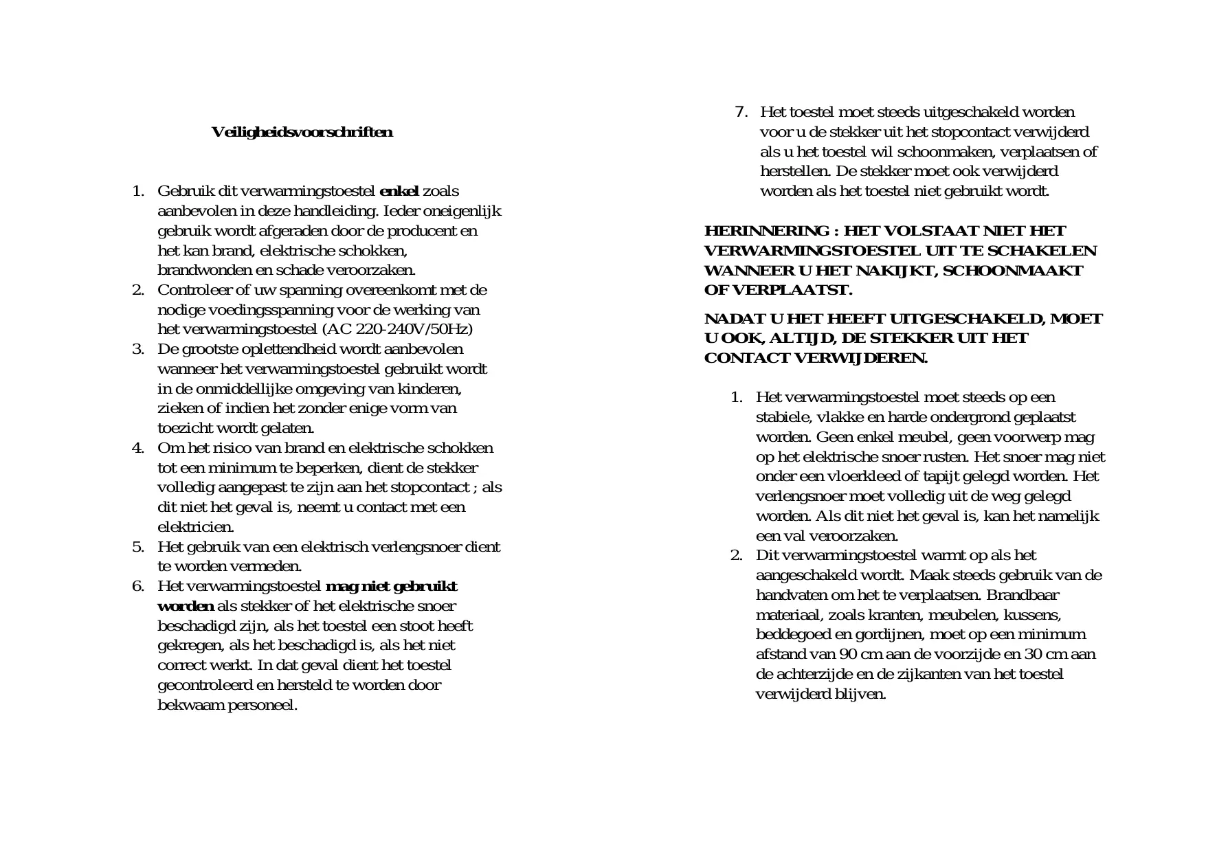 1. Gebruik dit verwarmingstoestel enkel zoals