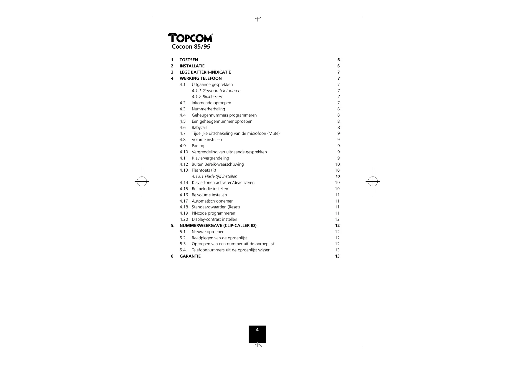 - Gedurende de garantieperiode verhelpt Topcom kostenloos alle defecten die te wijten zijn aan materiaal- of productiefouten. Topcom kan, naar keuze, het defecte toestel ofwel herstellen ofwel vervangen.