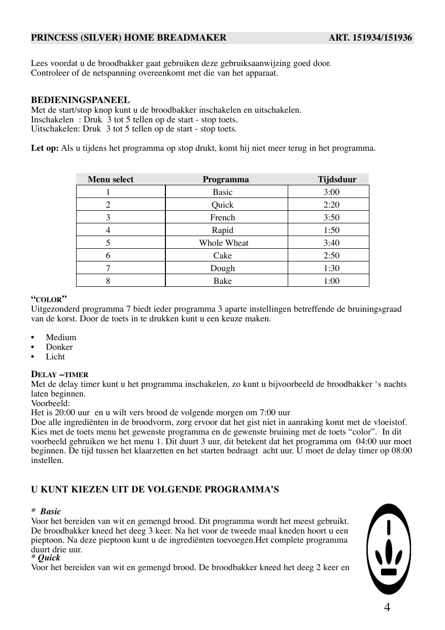 151934 - PRINCESS - Gratis gebruiksaanwijzing en handleiding