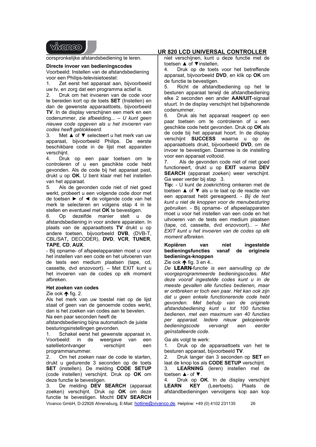 GEBRUIKSAANWIJZING UNIVERSAL CONTROLLER UR 820 LCD VIVANCO