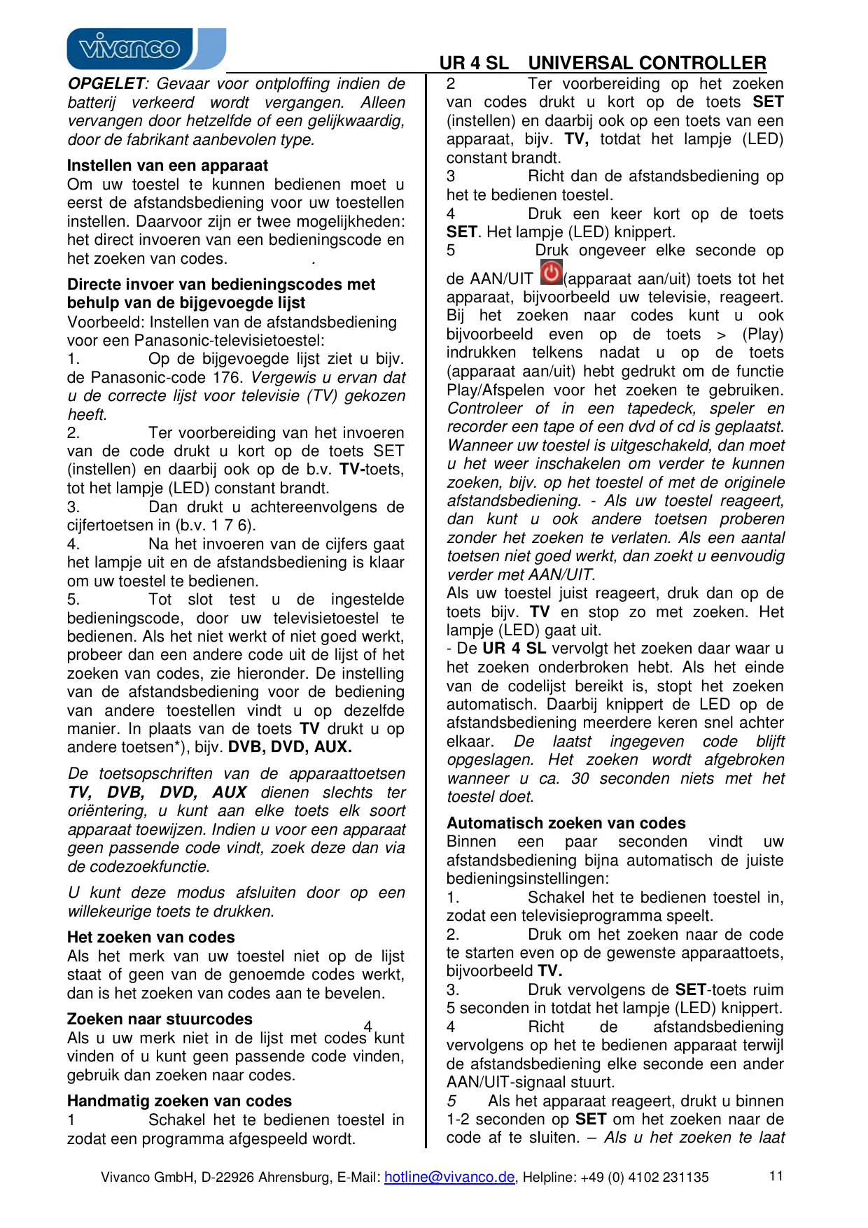 Vind de handleiding van het apparaat gratis UR 4 SL UNIVERSAL CONTROLLER VIVANCO in PDF-formaat.