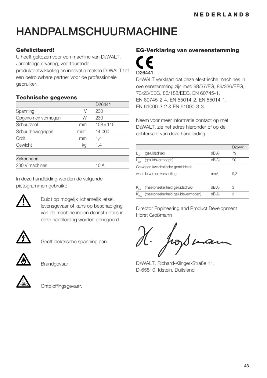 EN 61000-3-2 & EN 61000-3-3. Neem voor meer informatie contact op met DEWALT, zie het adres hieronder of op de achterkant van deze handleiding. D26441 EN 61000-3-3. Ønsker du flere opplysninger, vennligst kontakt DEWALT på adressen nedenfor eller se veiledningens bakside. D26441