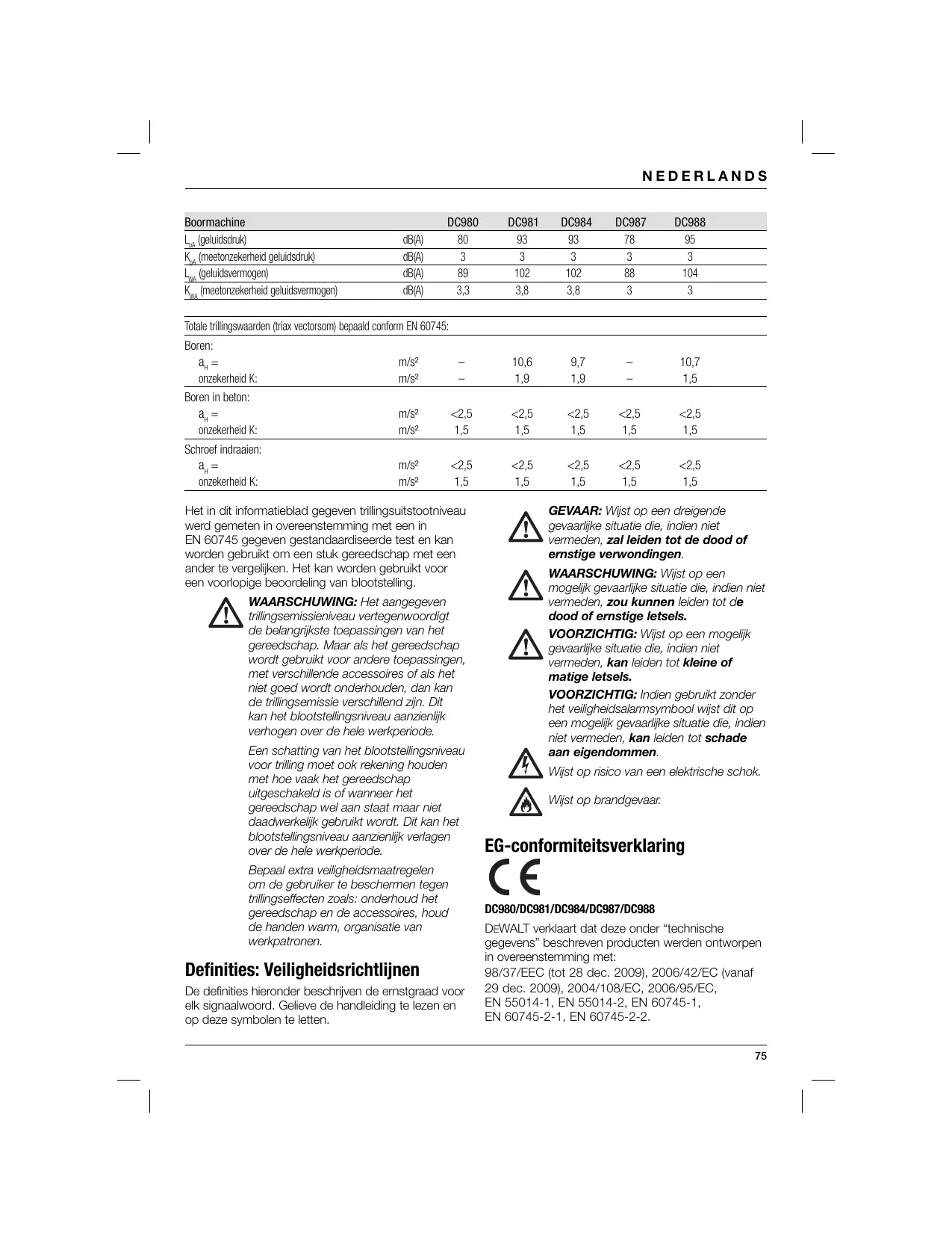 DEWALT verkaart dat deze onder "technische gegevens" beschreiben producten werden ontworpen in overeenstemming met: