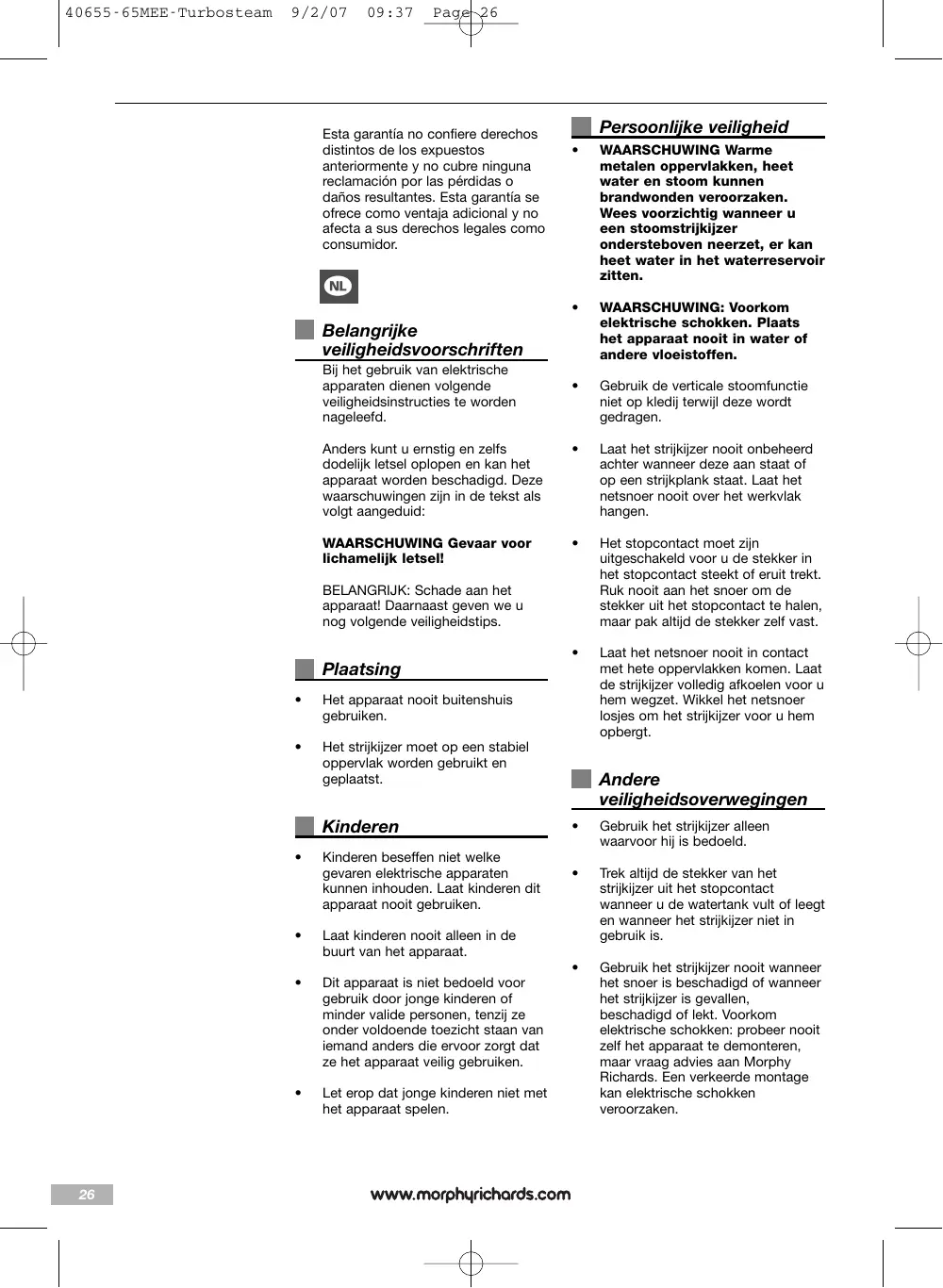 h De producten van Morphy Richards zijn alleen bedoeld voor huishoudelijk gebruik. Morphy Richards streeft ernaar de kwaliteit en het design van zijn producten voortdurend te verbeteren. Het bedrijf behoudt zich daarom het recht voor om de specificaties van de producten op ieder ogenblik te wijzigen.