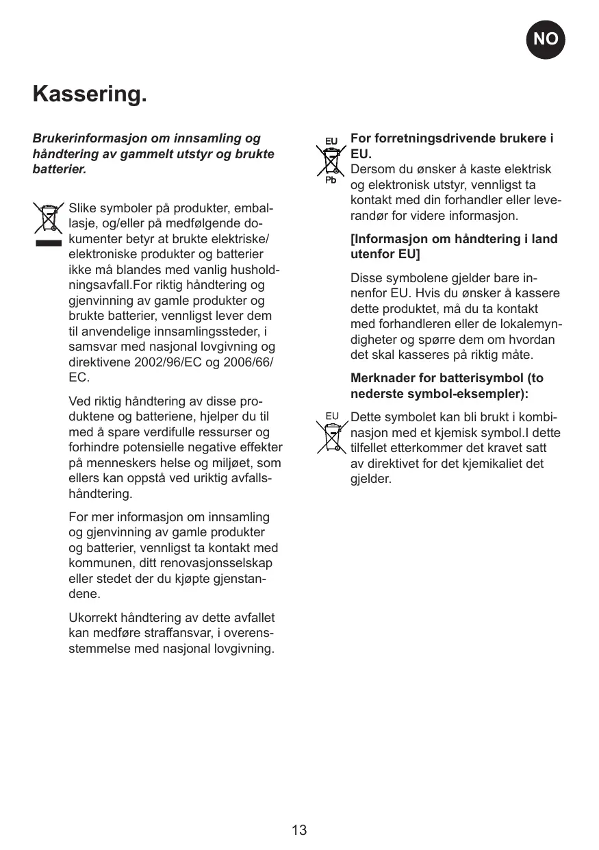 Voor meer informatie over het verzamelen en recycleren van oude producten en batterijen, gelieve contact op te nemen met uw plaatselijke gemeente, uw afvalverwijderingsdiensten of de winkel waar u de goederen gekocht hebt. Voor een niet-correcte verwijdering van dit afval kunnen boetes opgelegd worden in overeenstemming met de nationale wetgeving.