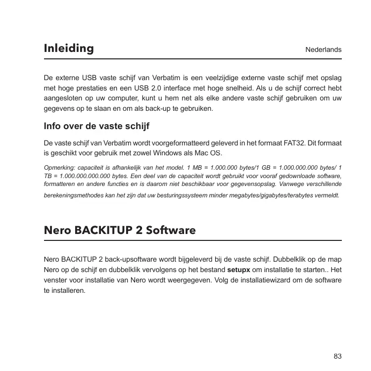 GEBRUIKSAANWIJZING EXTERNAL HARD DRIVE USB 2.0 VERBATIM