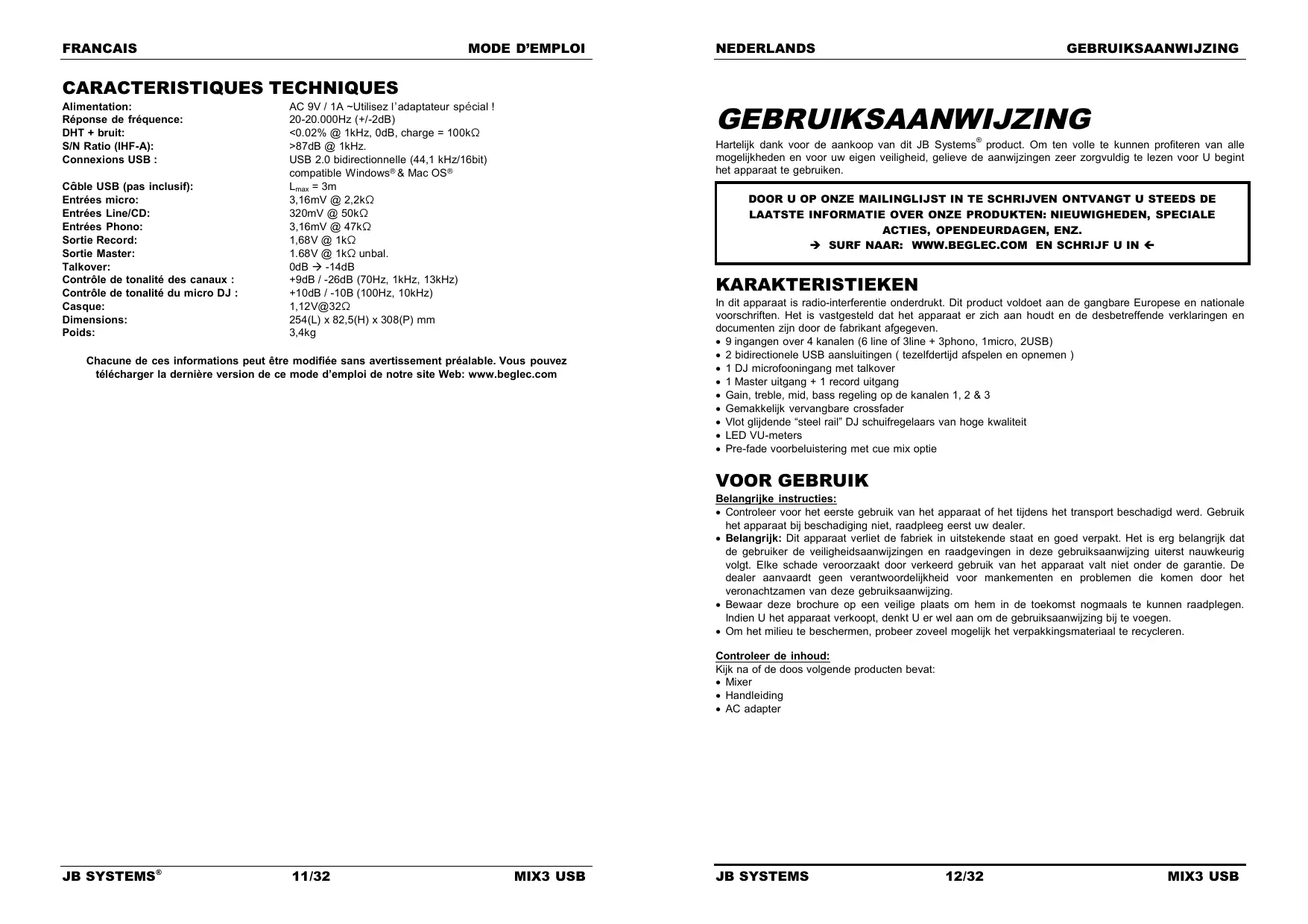 GEBRUIKSAANWIJZING MIX 3 USB JBSYSTEMS