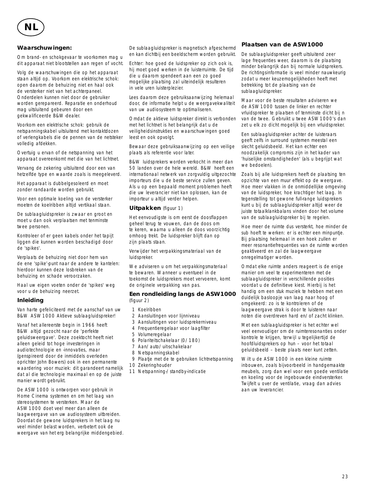 GEBRUIKSAANWIJZING B&W ASW1000 B&W