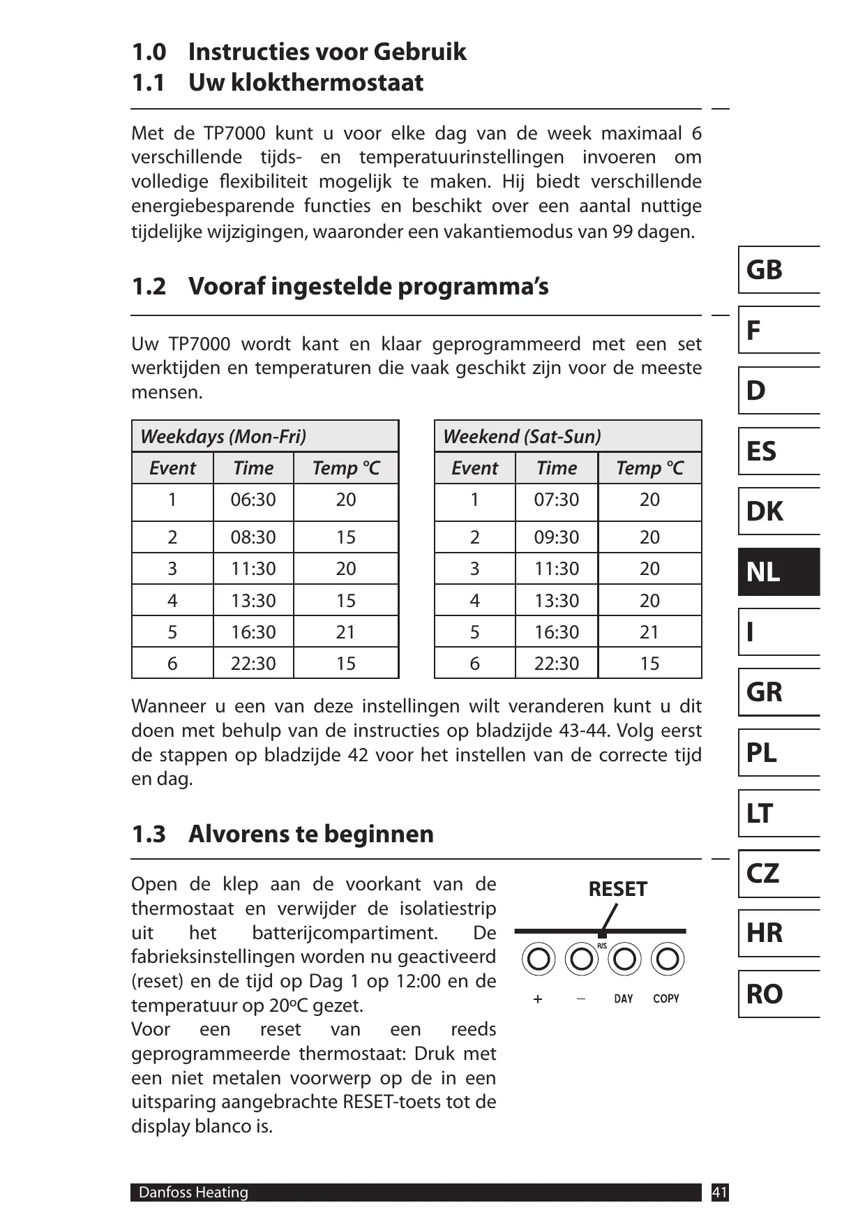 TP7000 - Programmeerbare thermostaat DANFOSS - Gratis gebruiksaanwijzing en handleiding
