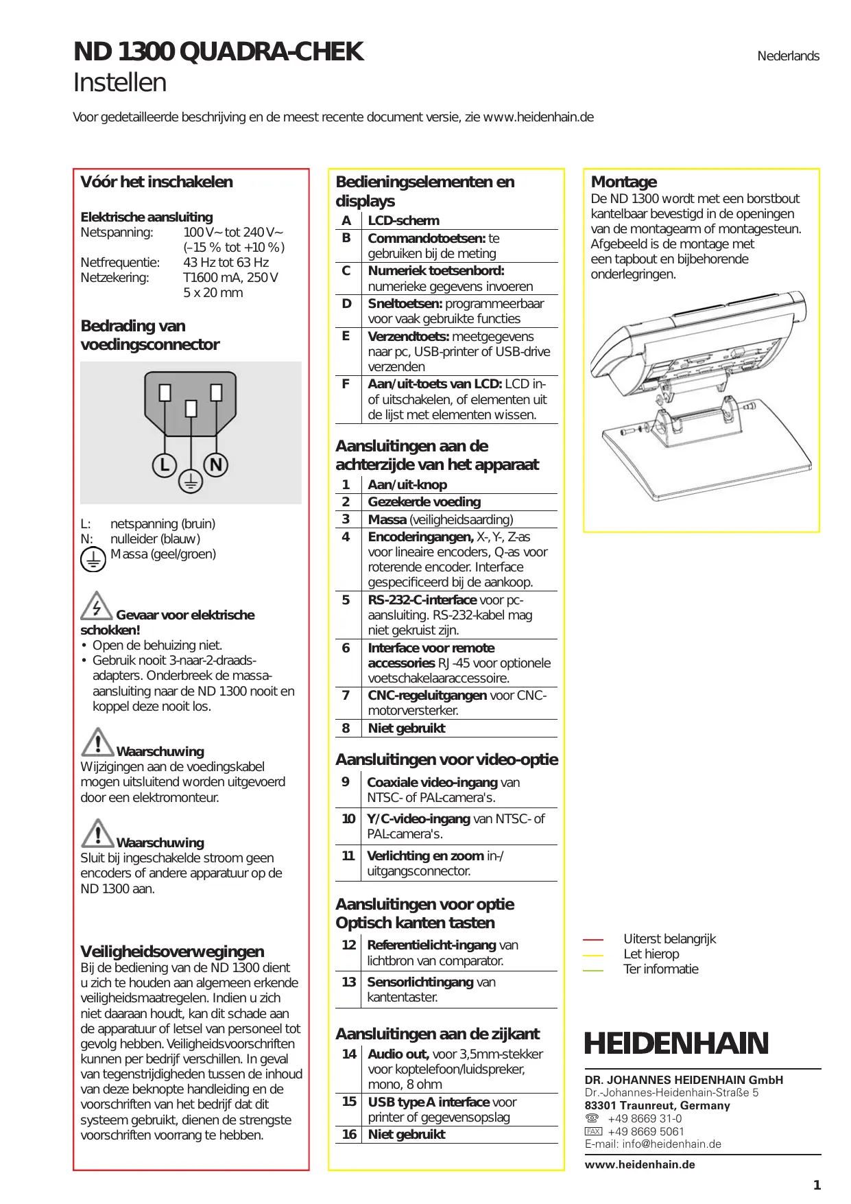 GEBRUIKSAANWIJZING ND 1300 HEIDENHAIN
