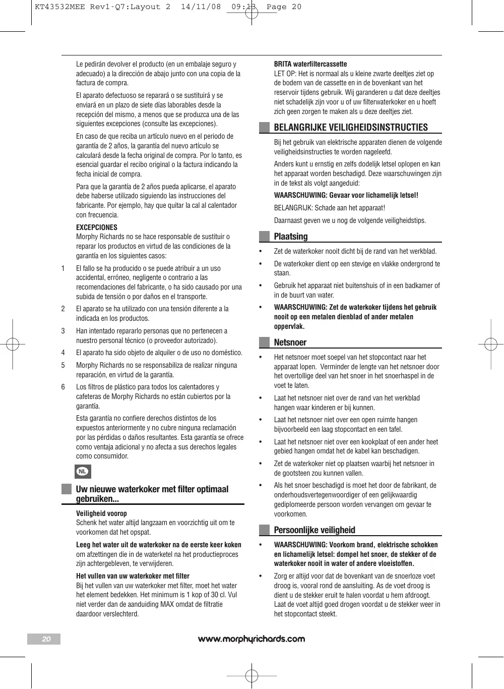 TWEE JAAR GARANTIE Producten van Morphy Richards worden geproduceerd overeenkomstig internationaal erkende kwaliteitsnormen. Boven uw wettelijke vastgestelde rechten uit, garandeert Morphy Richards dat dit product vanaf de datum van aankoop gedurende een periode van TWEE JAAR vrij zal zijn van materiaal- en fabricagefouten. Bewaar uw kassabon als bewijs van aankoop. Niet uw kassabon aan deze pagina.