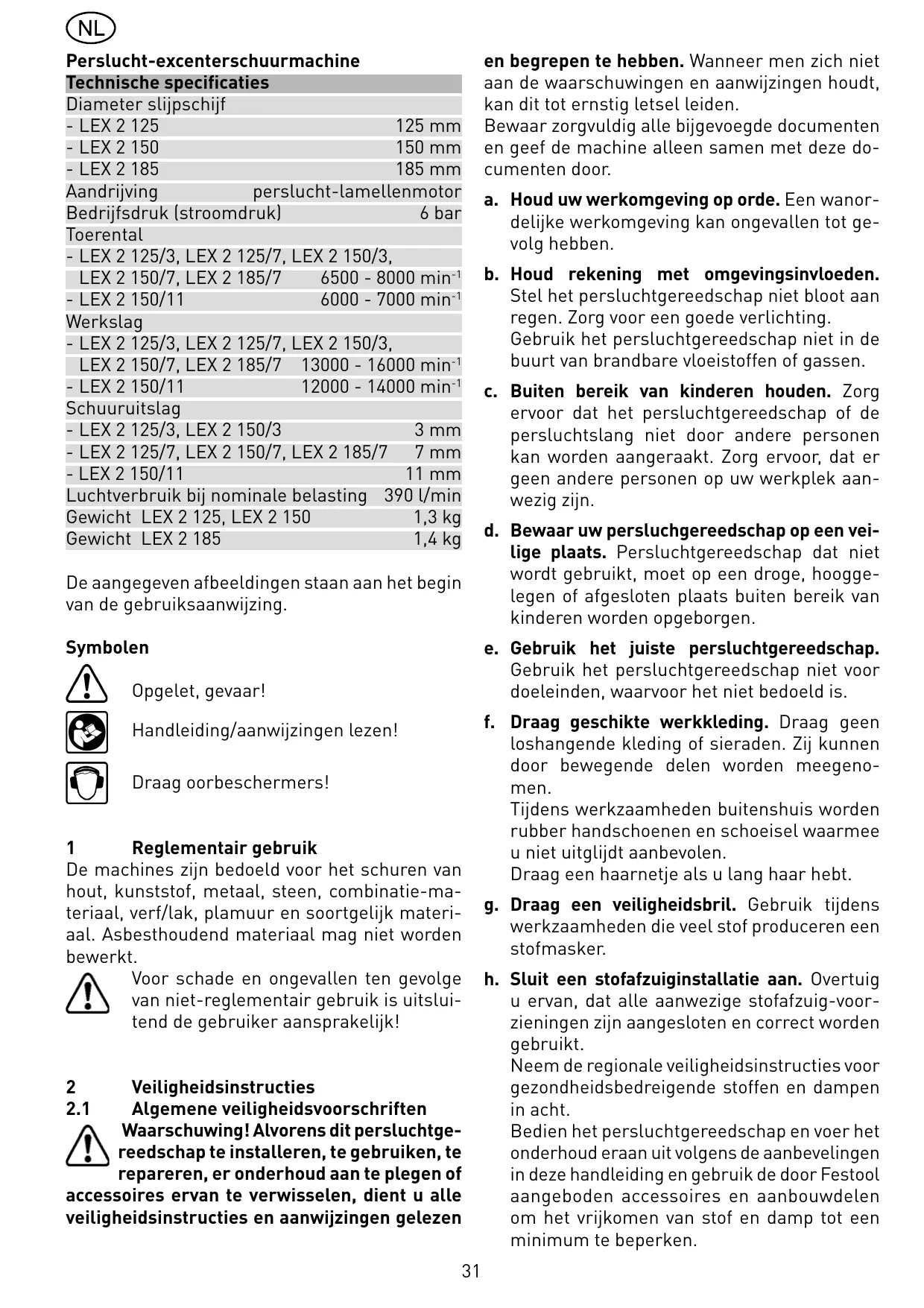 Download de handleiding voor uw Excenterschuurmachine in PDF-formaat gratis! Vind uw handleiding 150-11 - FESTOOL en neem uw elektronisch apparaat weer in handen. Op deze pagina staan alle documenten die nodig zijn voor het gebruik van uw apparaat. 150-11 van het merk FESTOOL.
