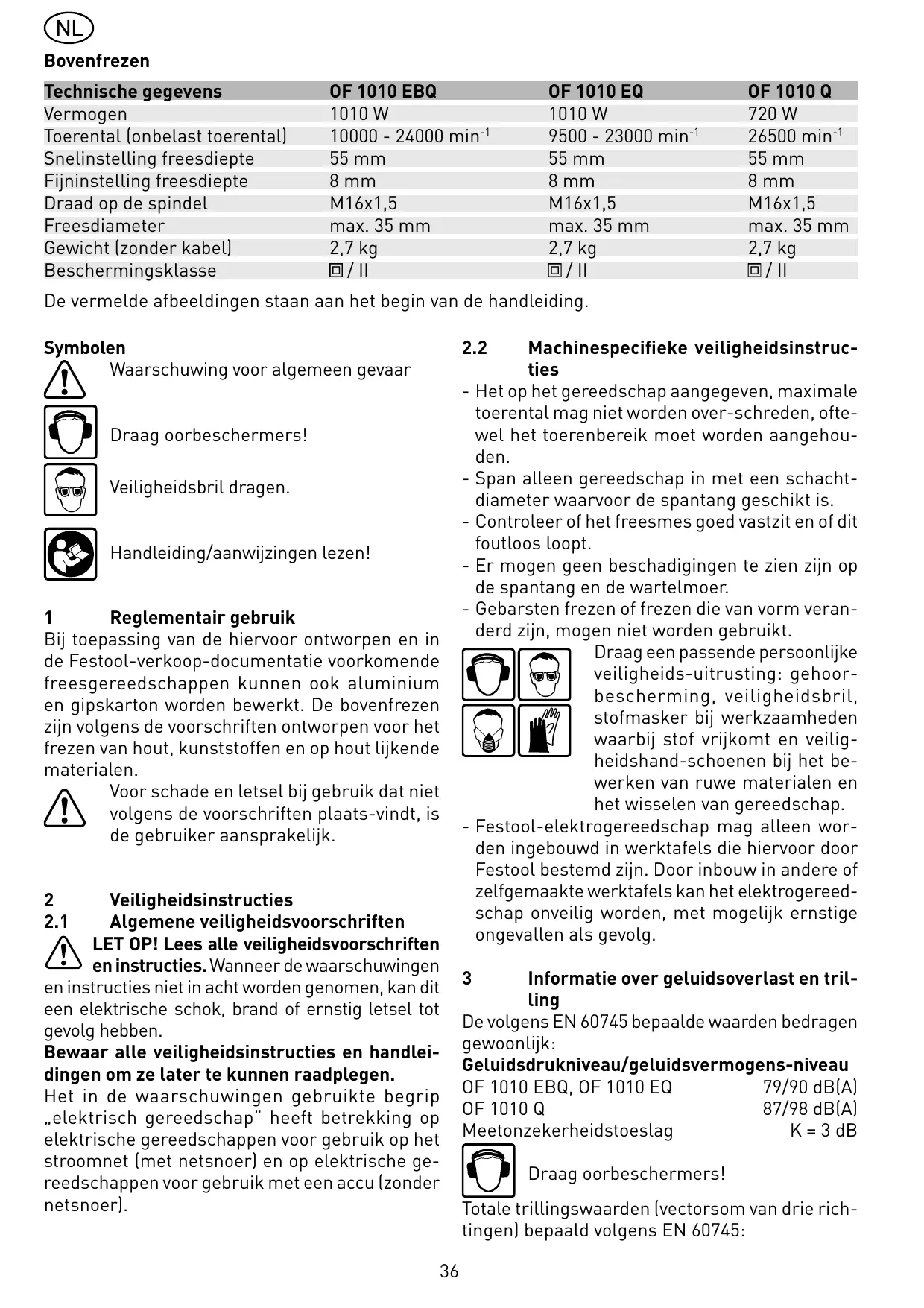 GEBRUIKSAANWIJZING OF 1010 EBQ FESTOOL