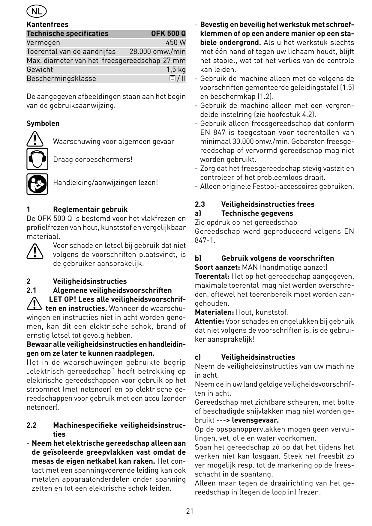 GEBRUIKSAANWIJZING OFK 500 Q FESTOOL