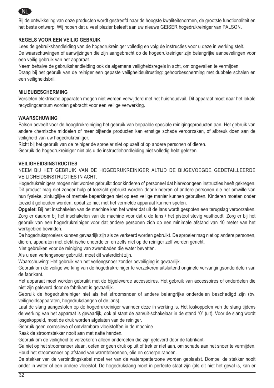 GEBRUIKSAANWIJZING GEISER PALSON