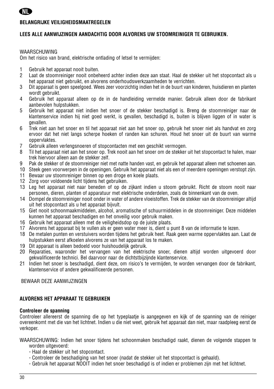 LEES ALLE AANWIJZINGEN AANDACHTIG DOOR ALVORENS UW STOOMREINIGER TE GEBRUIKEN.