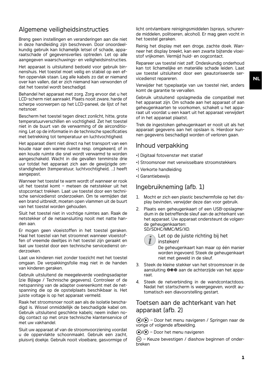 - Steek de netverbinding in de wandcontactdoos. Nadat het startschem is weergegeven, worden automatisch de diavoorsteling gestart.