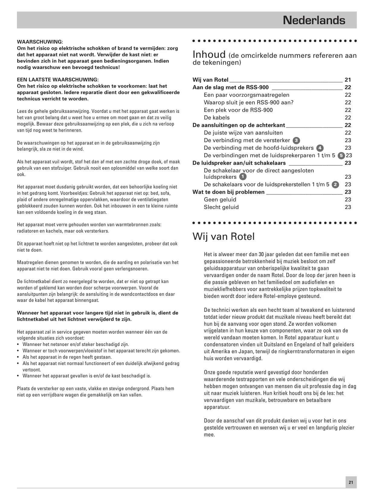 GEBRUIKSAANWIJZING RSS900 ROTEL