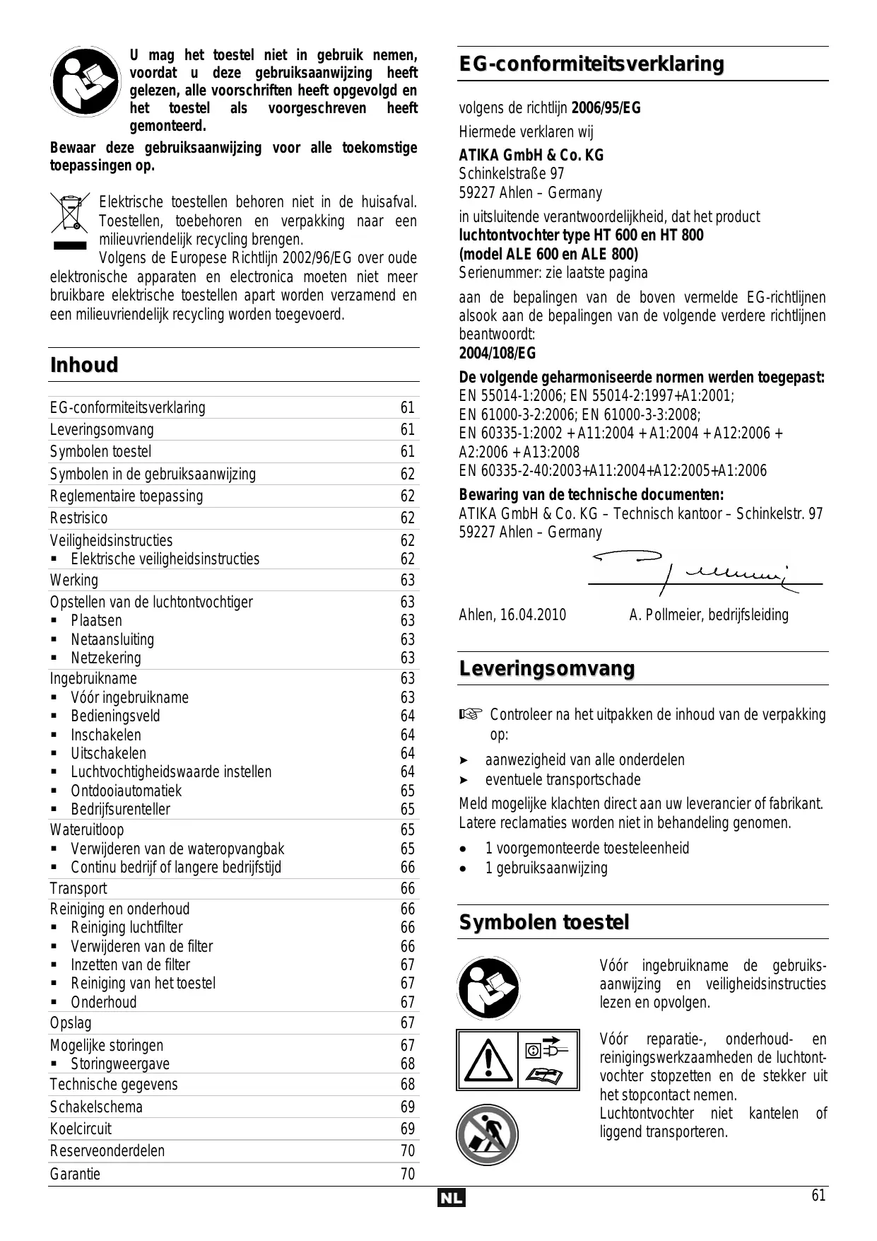 ALE 600 - Luchtontvochtiger ATIKA - Gratis gebruiksaanwijzing en handleiding
