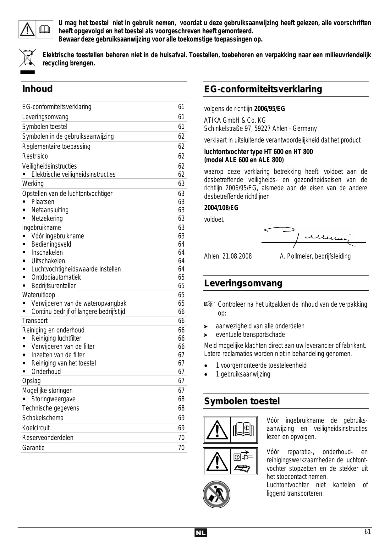ALE 800 - Luchtontvochtiger ATIKA - Gratis gebruiksaanwijzing en handleiding