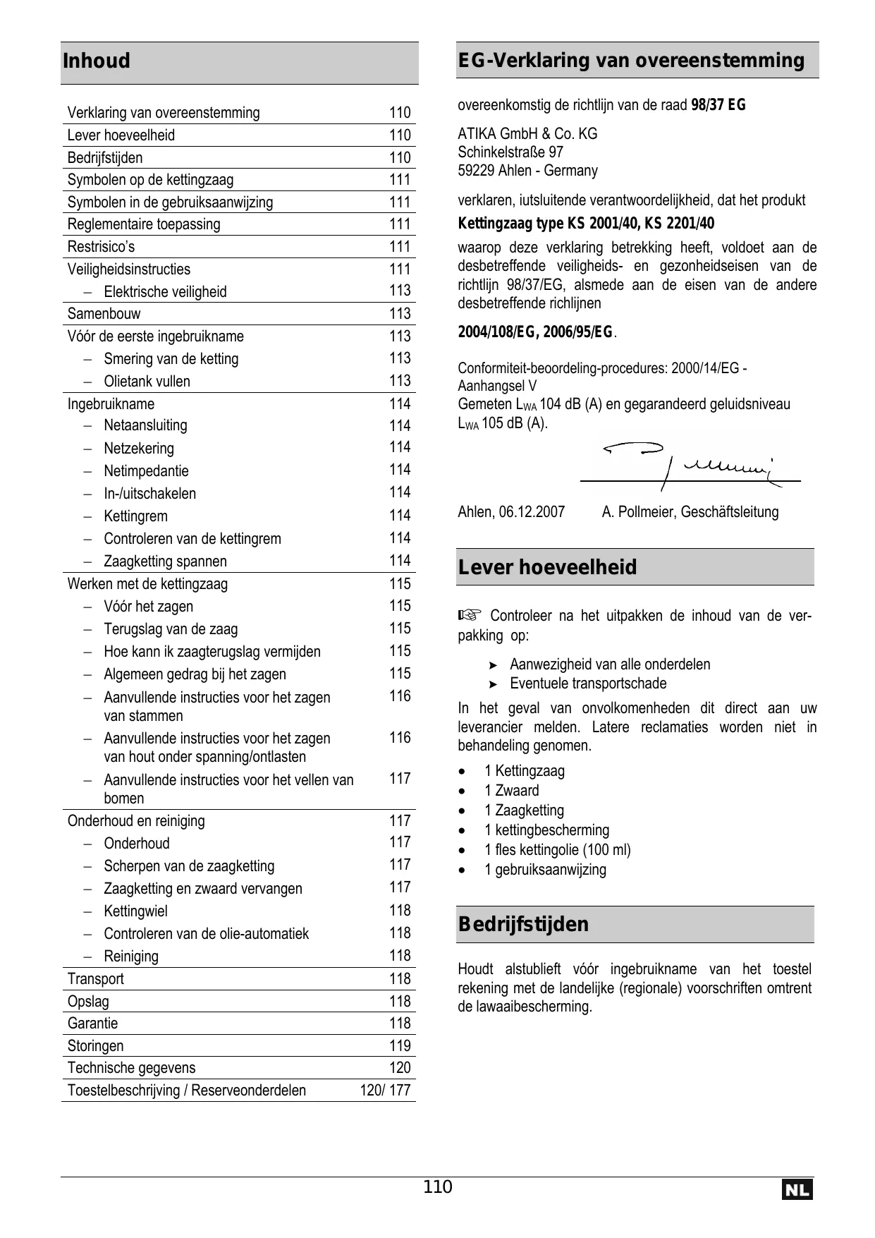 KS 2001 - Kettingzaag ATIKA - Gratis gebruiksaanwijzing en handleiding