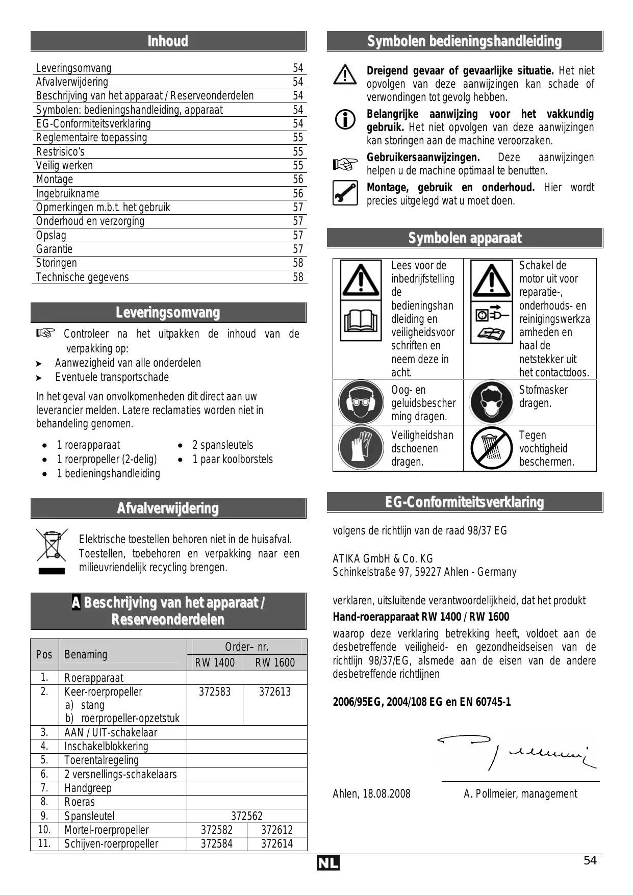 GEBRUIKSAANWIJZING RW 1400 ATIKA