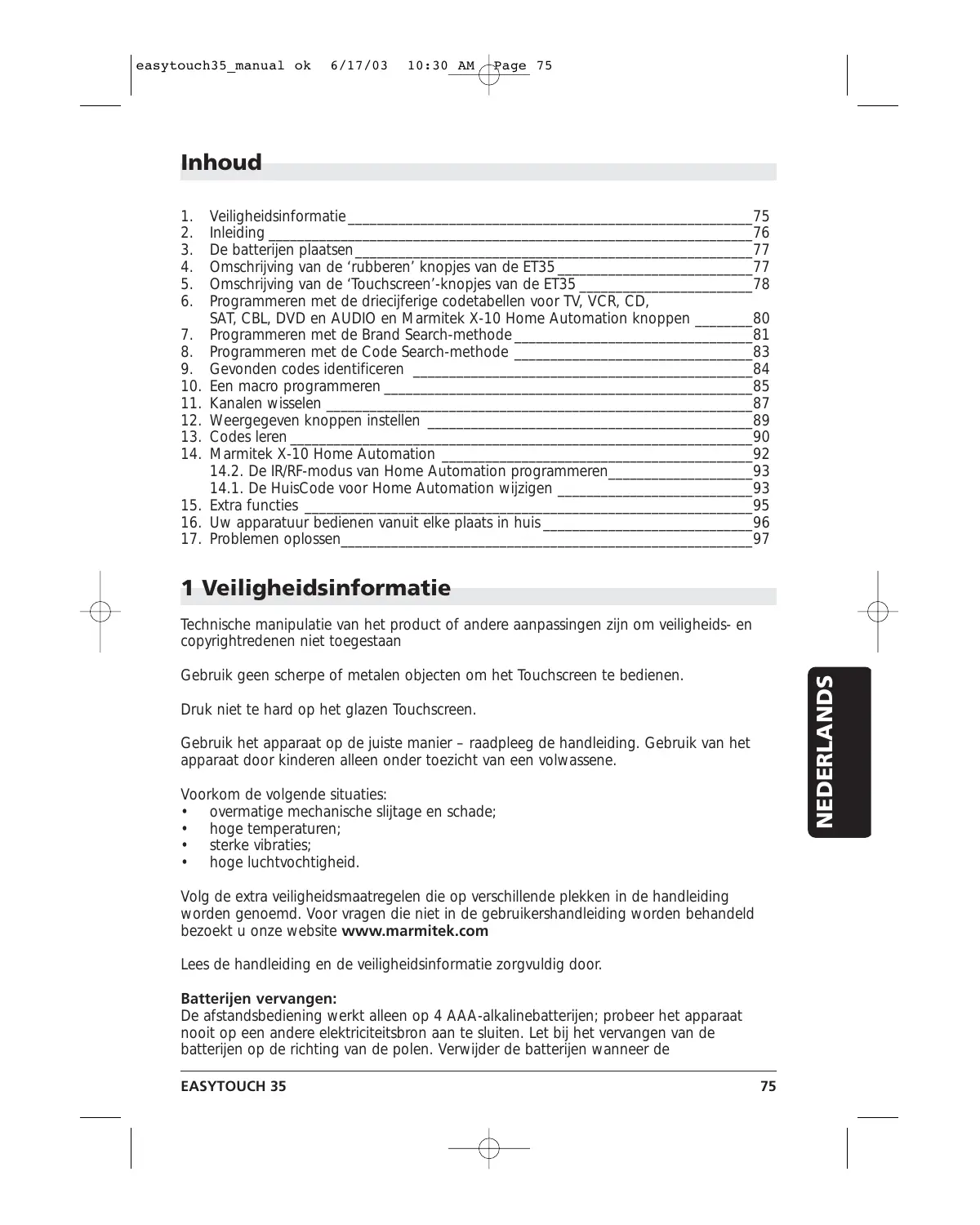 EASYTOUCH 35 - X10 - Gratis gebruiksaanwijzing en handleiding