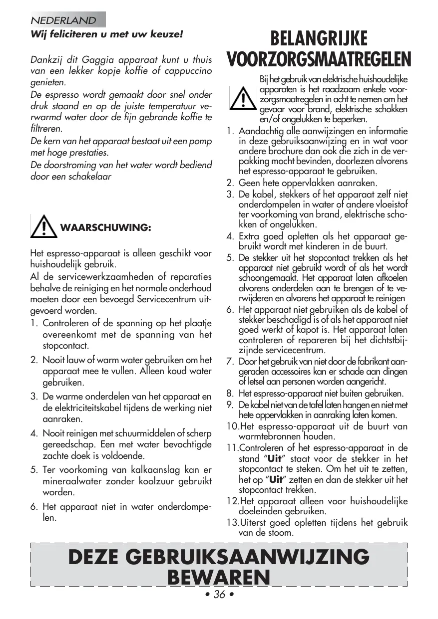 BABY - Koffiemachine GAGGIA - Gratis gebruiksaanwijzing en handleiding