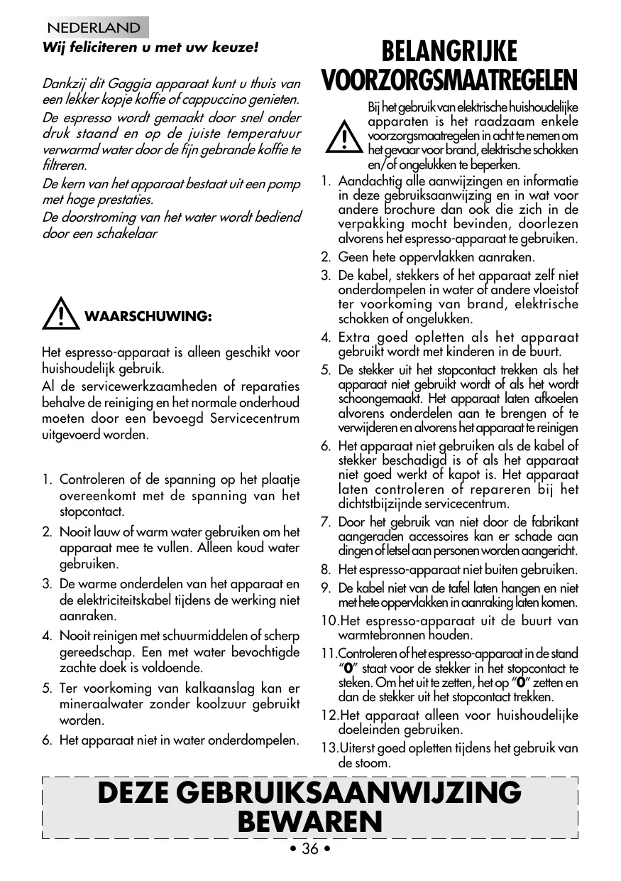 GEBRUIKSAANWIJZING GRAN GAGGIA