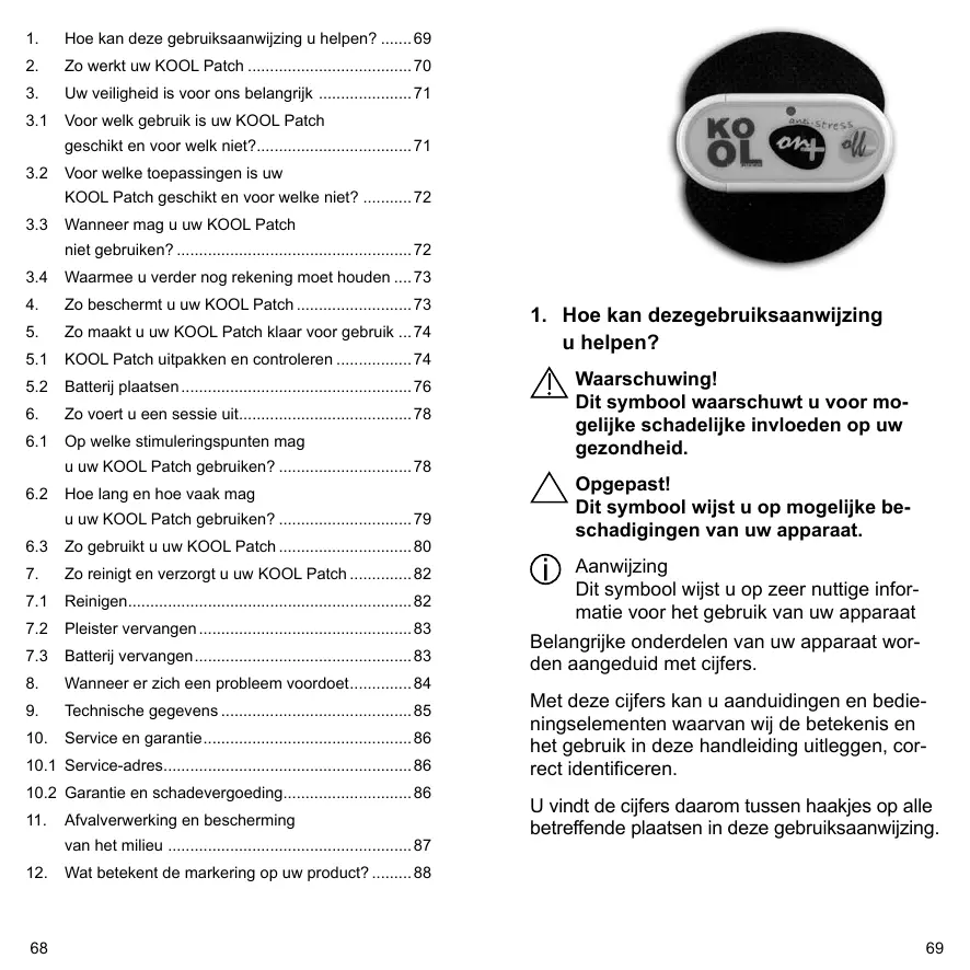 Veuillez lire attentivement ce mode d’emploi avant la première utilisation de votre KOOL Patch. Ce mode d’emploi contient toutes les informations nécessaires pour vous permettre d’utiliser votre KOOL Patch en toute sécurité et d’éviter tout dommage. Le présent mode d’emploi fait partie intégrante de votre appareil. Veuillez le conserver soigneusement jusqu’à ce que vous donniez le KOOL Patch à un autre utilisateur avec ce mode d’emploi ou jusqu’à ce que vous vous en débarrassiez.