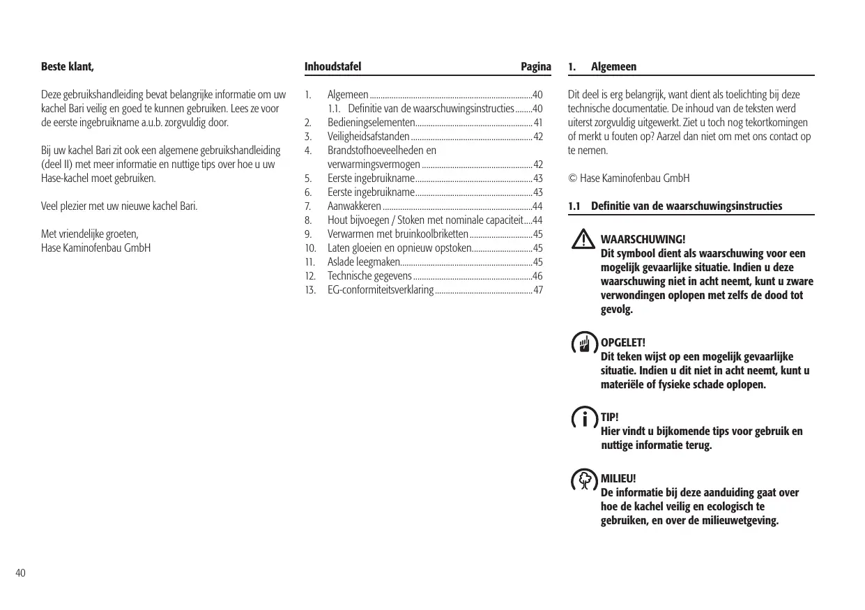 En complément, vous trouverez en annexe un manuel d‘utilisation général (partie II) qui vous donnera des indications et des astuces utiles sur votre poêle-cheminée Hase. Nous espérons que votre poêle-cheminée Bari vous apportera entière satisfaction. Votre spécialiste en poêles-cheminées,