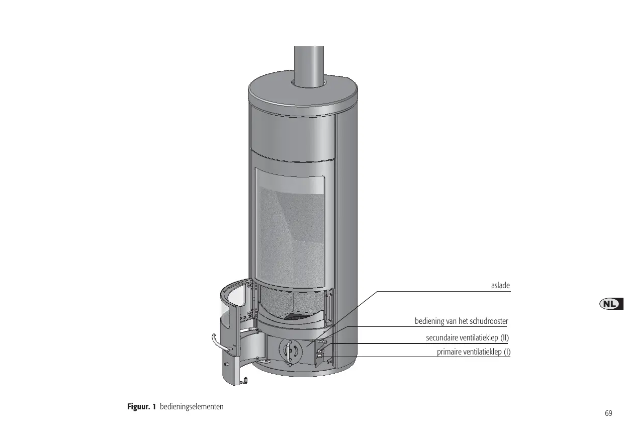150 mm La conformité de l‘appareil de chauffage indépendant pour combustibles solides avec les exigences de la norme a été contrôlée auprès de l‘organisme de contrôle : RWE Power AG Feuerstättenprüfstelle D-50226 Frechen Kennziffer: NRW 16 Trier, le 12.02.2010 De primaire lucht wordt langs onderen door het rooster in de verbrandingsruimte gevoerd. Tijdens het aanwakkeren wordt daardoor sneller de vereiste temperatuur in de verbrandingsruimte bekomen.