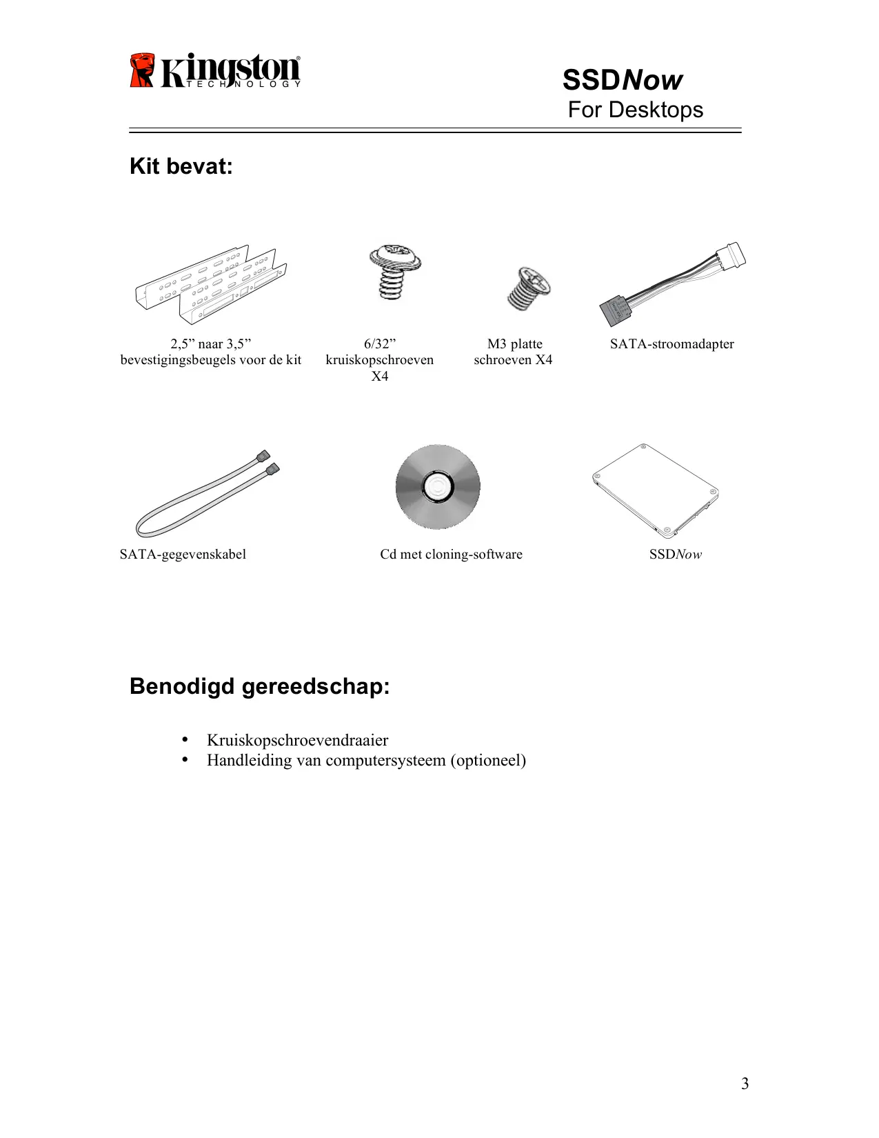 SSDNow For Desktops Kit bevat: