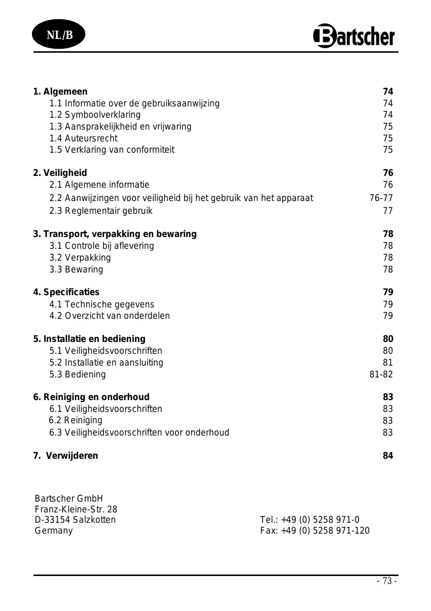 Vind de handleiding van het apparaat gratis A151.600 BARTSCHER in PDF-formaat.