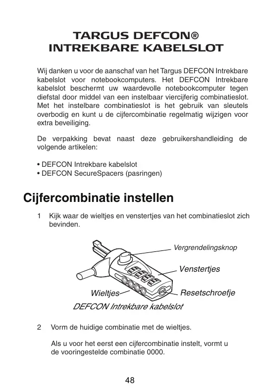 GEBRUIKSAANWIJZING NOTEBOOK SECURITY DEFCON TARGUS