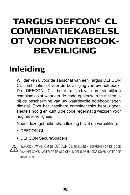 GEBRUIKSAANWIJZING NOTEBOOK SECURITY DEFCON CL TARGUS